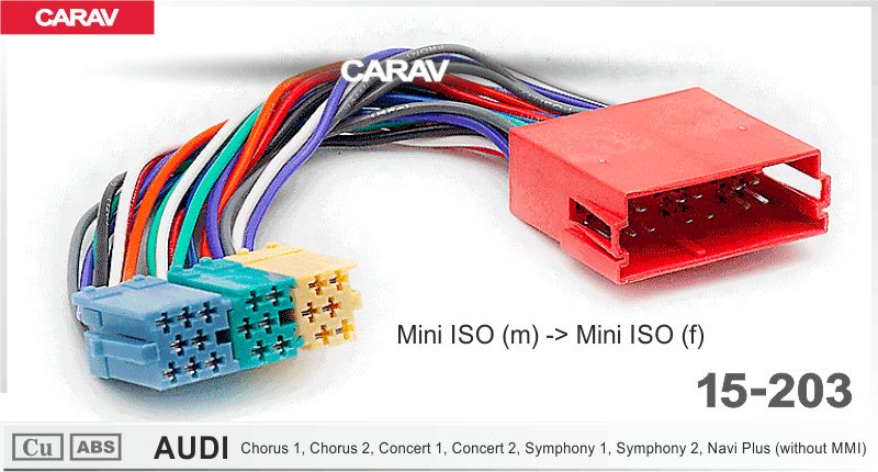 —CARAV 15-203 разъем для подключения автомагнитолы Mini ISO (Male) - Mini ISO (Female) /AUDI Chorus 1/2, Concert 1/2, Symphony 1/2, Navi Plus (без MMI)