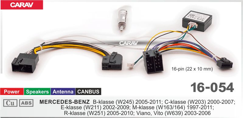 —CARAV 16-054 Комплект проводов для подключения Android ГУ (16-pin) на а/м MERCEDES-BENZ B(W245) 05-11; C (W203) 00-07; E(W211) 02-09; M(W163/164)