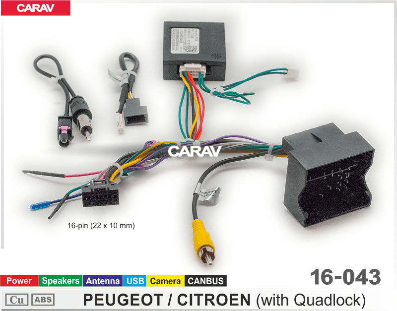 —CARAV 16-043 комплект подключения базовых магнитол для а/м PEUGEOT-CITROEN (all with Quadlock) / Power + Speakers + Antenna + USB + Camera + CANBUS