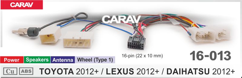 —CARAV 16-013 (Комплект проводов для подключения Android ГУ (16-pin) на а/м TOYOTA /LEXUS/ DAIHATSU 2012+, Питание + Динамики + Антенна +Руль